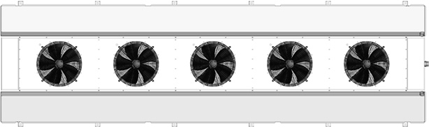 Корпус воздухоохладителей изготавливается из оцинкованного листового металла, покрытого белой Ral 9016 электростатической порошковой краской для защиты от коррозии; имеет привлекательный дизайн в дополнение к своей прочности. Кроме того, особая конструкция дренажных и боковых частей корпуса предполагает простой монтаж и техническое обслуживание.