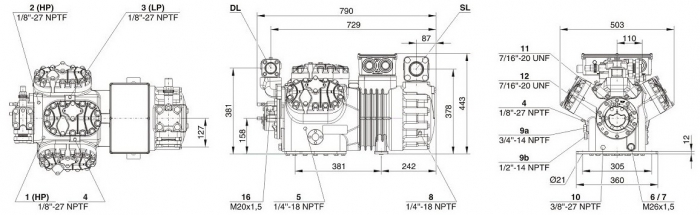 прессора Bitzer 6F-50.2Y. Полугерметичный поршневой холодильный компрессор BITZER Ecoline 6FE-50Y-40P используется в холодильных установках, системах холодоснабжения, системах кондиционирования воздуха. Серия полностью охватила диапазон производительности компрессоров прошлого поколения и соответствует им по присоединительным размерам. Компрессоры серии Ecoline оптимизированы для работы с хладагентом R134a, также могут использоваться R404A, R407C, R507A, R22 (его применение ограничено Монреальским протоколом, в 2020 от него планируется полностью отказаться, заменив безопасными для озона фреонами). Привод компрессора износоустойчив, обеспечивается низкая вибрация и бесшумность работы, чему способствует оптимизированная балансировка масс и низкая пульсация газа благодаря особой конструкции головки цилиндров. Устройство надежно, клапаны выполнены из пружинной ударопрочной стали, клапанная доска упрочнена. Компрессор снабжен встроенным электромотором с датчиками РТС, контролирующими температурный режим. Имеется возможность регулировки производительности (только для 4,6,8 цилиндровых компрессоров).