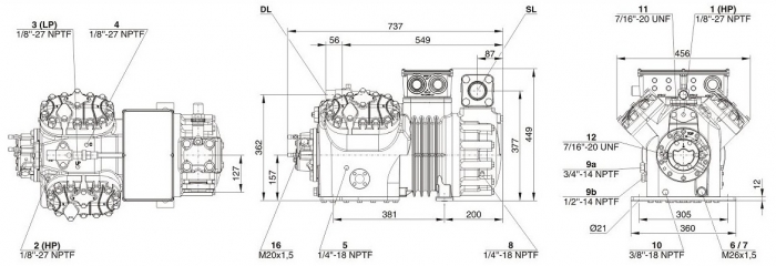 В зависимости от необходимых условий работы можно купить поршневой компрессор Bitzer с дополнительными опциями: подогрев масла в картере, вентилятор дополнительного охлаждения цилиндров, система охлаждения впрыска, система регулировки производительности. В комплект стандартной поставки, входит заправка маслом и защитным газом. Модель оборудована защитными вентилями Rotalock на всасывании и нагнетании. В стандартном исполнении, компрессор имеет 4 виброопоры.