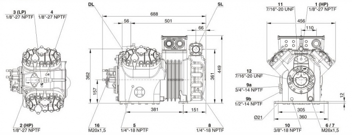 В зависимости от необходимых условий работы можно купить поршневой компрессор Bitzer с дополнительными опциями: подогрев масла в картере, вентилятор дополнительного охлаждения цилиндров, система охлаждения впрыска, система регулировки производительности. В комплект стандартной поставки, входит заправка маслом и защитным газом. Модель оборудована защитными вентилями Rotalock на всасывании и нагнетании. В стандартном исполнении, компрессор имеет 4 виброопоры.
