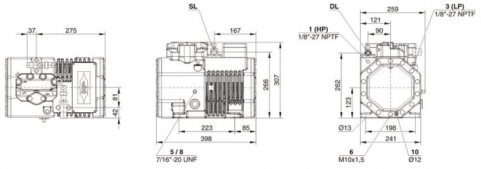 В зависимости от необходимых условий работы можно купить поршневой компрессор Bitzer с дополнительными опциями: подогрев масла в картере, вентилятор дополнительного охлаждения цилиндров, система охлаждения впрыска, система регулировки производительности. В комплект стандартной поставки, входит заправка маслом и защитным газом. Модель оборудована защитными вентилями Rotalock на всасывании и нагнетании. В стандартном исполнении, компрессор имеет 4 виброопоры.