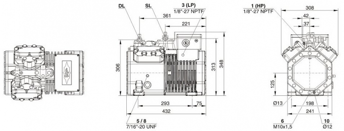 В зависимости от необходимых условий работы можно купить поршневой компрессор Bitzer с дополнительными опциями: подогрев масла в картере, вентилятор дополнительного охлаждения цилиндров, система охлаждения впрыска, система регулировки производительности. В комплект стандартной поставки, входит заправка маслом и защитным газом. Модель оборудована защитными вентилями Rotalock на всасывании и нагнетании. В стандартном исполнении, компрессор имеет 4 виброопоры.